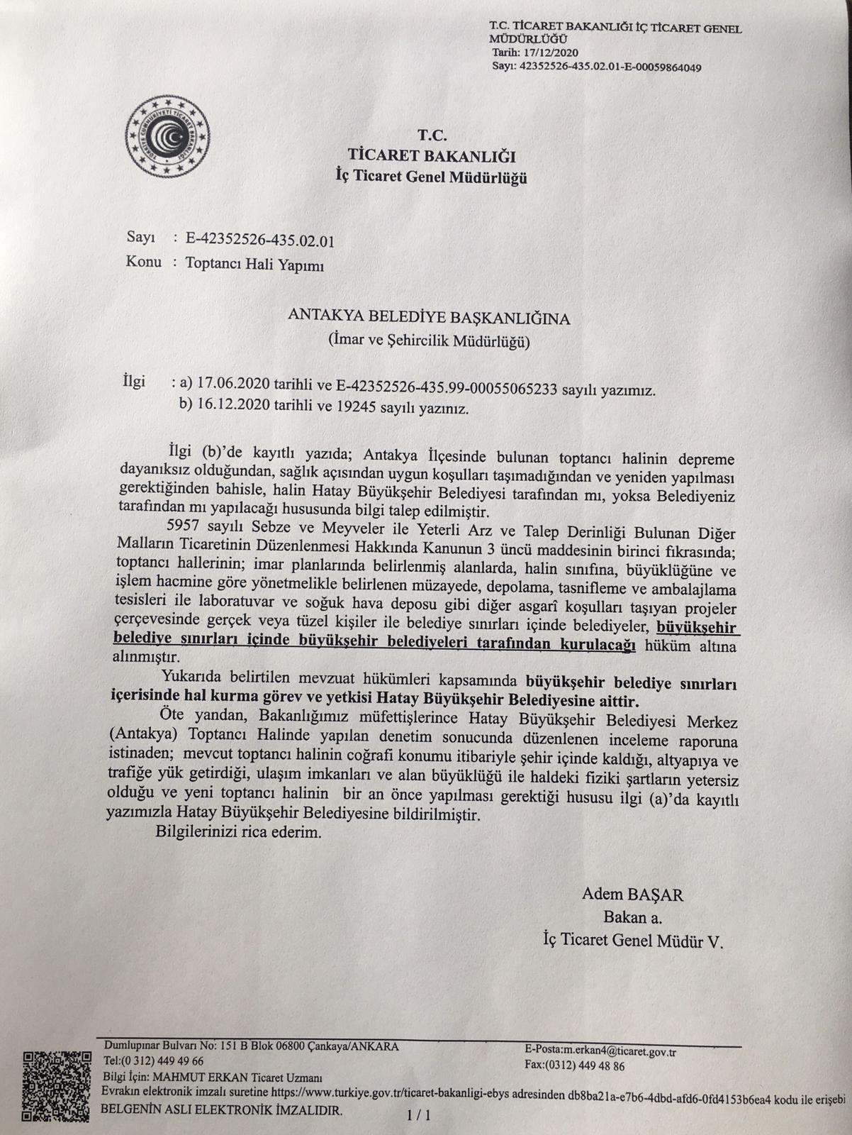 Antakya Belediyesi, sebze halinin taşınması ve yeni yerine yapılması yetkisinin HBB’nin uhdesinde olduğunu, HBB Başkanı Lütfü Savaş’ın, boş açıklamalardan uzaklaşarak üzerine düşeni yapmasını istediklerini belirtti. Antakya Belediyesi’nden konuyla ilgili yapılan açıklamada, “Antakya sebze hali ilgili kamuoyunda uzun zamandır süregelen serzenişler herkesin malumudur. Konu ile ilgili gerek HESOB ve gerekse ATO tarafından sık sık Hatay Büyükşehir Belediyesine çağrı yapıldığı da malumunuzdur. Bu çağrılarda sebze halinin gerek şehrin merkezinde olmasının yarattığı sıkıntılar gerekse fiziki yapısının depreme dayanıksızlığı ve çalışma ortamının sağlık açısından elverişsizliği dile getirilmektedir. Hatay Büyükşehir Belediyesi uhdesinde olan sebze hali ile ilgili geçtiğimiz günlerde bir televizyon programında sorulan soruya Sayın Büyükşehir Belediye Başkanı Lütfü Savaş: “Sebze ve meyve hali ile ilgili yetkinin kimde olduğunu siyasi iktidar netleştirsin ve bu yetkinin Hatay Büyükşehir Belediyesine ait olduğunu söylesin, ben hemen gerekli ihaleye çıkarım.” diye cevap vermiş ve bu konuyu siyasi iktidara sorması hususunda HESOB’a çağrı yapmıştır. Bu çerçevede konunun netlik kazanması amacıyla 16.12.2020 tarihinde Antakya Belediyesi olarak Ticaret Bakanlığı İç Ticaret Genel Müdürlüğüne yazılı başvuru yaparak, Antakya ilçesinde bulunan toptancı halinin depreme dayanıksız olduğundan, sağlık açısından uygun koşulları taşımadığından ve yeniden yapılması gerektiğinden bahisle, halin Hatay Büyükşehir Belediyesi tarafından mı yoksa Antakya Belediyesi tarafından mı yapılacağı hususunda bilgi istenmiştir. Ticaret Bakanlığı İç Ticaret Genel Müdürlüğü 17.12.2020 tarihli yazı ile bilgi talebimize cevabında, “5957 sayılı kanunun 3’üncü maddesi gereğince büyükşehir belediye sınırları içerisinde hal kurma görev ve yetkisi Hatay Büyükşehir Belediyesine aittir.” demektedir. Bu durumda mevzuata göre zaten net olan ama Sayın Savaş tarafından algıyla çarpıtılan konu netlik kazanmıştır. Sebze ve Meyve Hali’ni daha önce yapacağını açıklayan, bunun için komisyoncu esnafla görüşmeler yapan, bu amaçla yer satın alan Hatay Büyükşehir Belediyesinin başka bahane ve algıların arkasına saklanmadan bir an önce Sebze ve Meyve Hali’ni yapmasını bekliyor, bu hususu kamuoyunun takdirlerine arz ediyoruz” denildi.