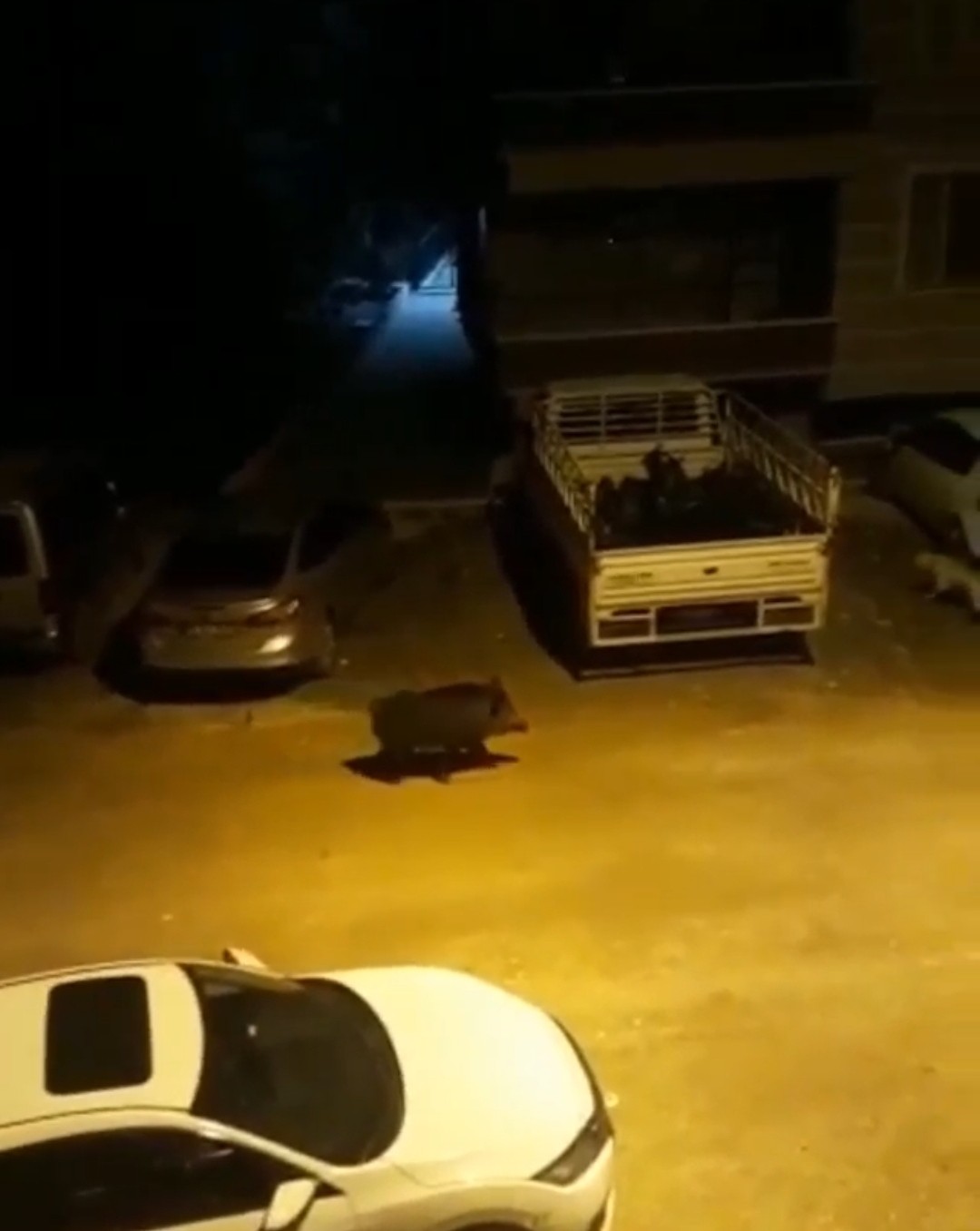 Defne ilçesi Turunçlu Mahallesi’nde aç kalan yaban domuzu, gece saatlerinde şehir merkezine inerek yiyecek aradı. Şehir merkezine inen yaban domuzu, bir sitede oturan vatandaşlar tarafından cep telefonu kamerasıyla görüntülendi. Bir süre etrafta yiyecek arayan yaban domuzu, daha sonra ormanlık alana girerek gözden kayboldu.