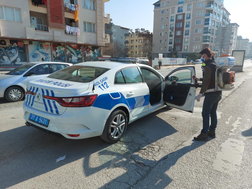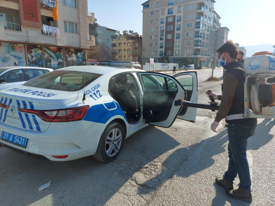 Yıl boyunca vatandaşların huzuru ve güvenliği için çalışmalarını sürdüren emniyet araçlarının sık kullanılması ve koronavirüs bulaşma riskine karşı Antakya Belediyesi Destek Hizmetleri Müdürlüğü ekipleri, emniyete ait araçların dezenfeksiyonunu sağlayarak, emniyet güçlerinin görevlerini daha hijyenik ortamlarda yapmalarına olanak sağladı.