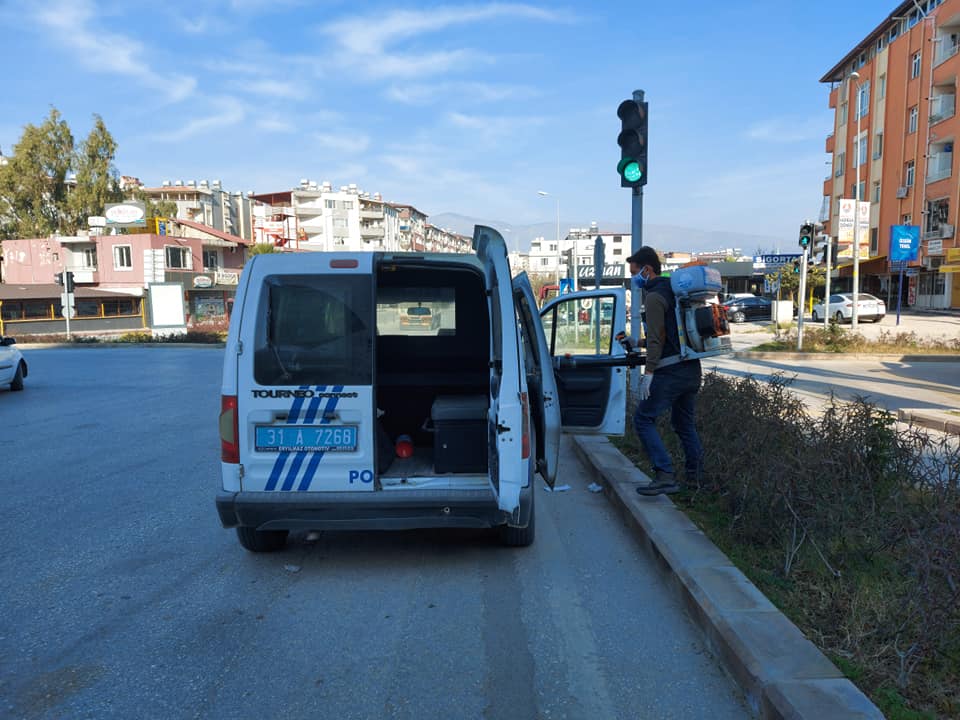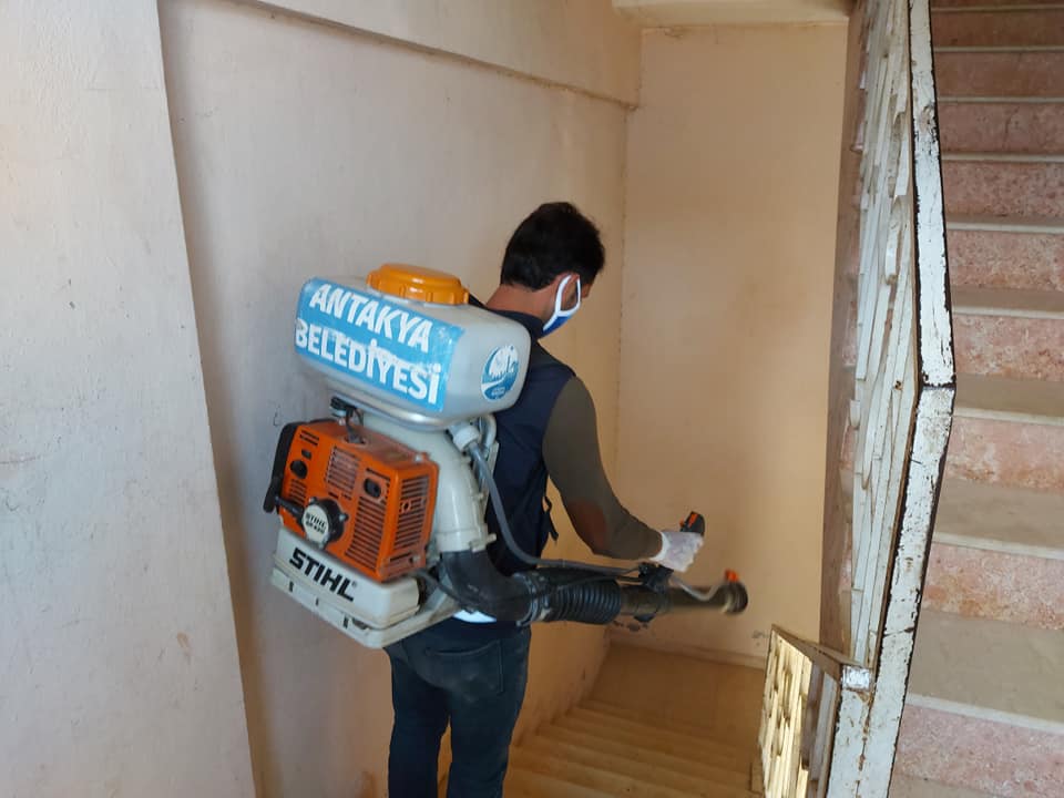 Sokağa çıkma yasağı olduğu günlerde vatandaşların daha temiz ve güvenli ortamlara kavuşması için çalışmalarını büyük titizlikle sürdüren Antakya Belediye Başkanı İzzettin Yılmaz öncülüğündeki ekipler, emniyet araçlarının ve şehrin bazı yerlerindeki binaların ve çevresinin dezenfekte edilmesi için kolları sıvadı.