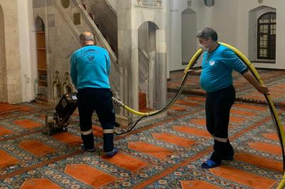 ANTAKYA BELEDİYESİ EKİPLERİNDEN RAMAZAN AYI BOYUNCA TÜM CAMİLERDE TEMİZLİK ÇALIŞMASI