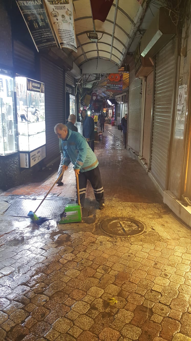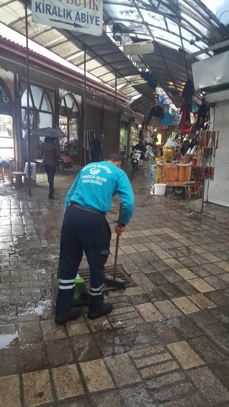 Antakya Belediyesi Temizlik İşleri Müdürlüğü ekipleri Uzun Çarşı, Kuyumcular Çarşısı ve Meydan Çarşısı içerisinde ve çevrelerinde ızgara ve mazgallarda yağmur altında temizlik çalışmaları gerçekleştirdi.