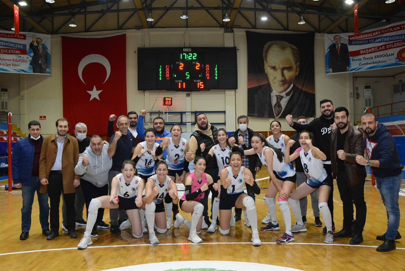 Aldıkları galibiyetin lig boyunca devamlılığı olması dileğinde bulunan Başkan Yılmaz, sporcular ve teknik kadro ile günün anısına hatıra fotoğrafı çekildi.