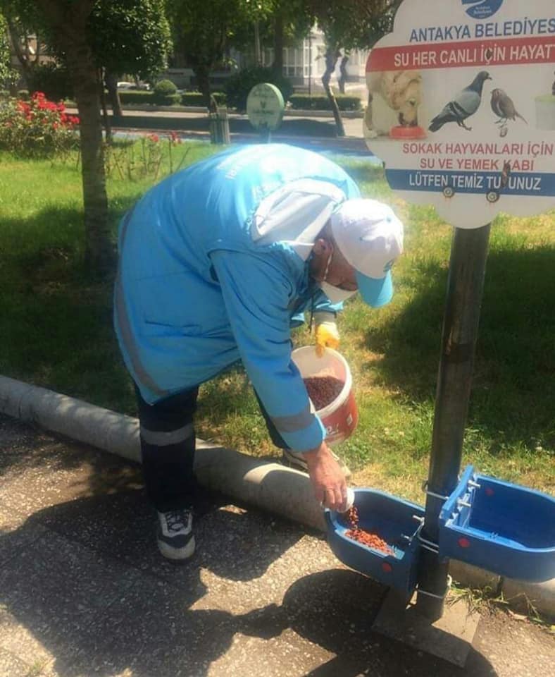 Antakya Belediye Başkanı izzettin Yılmaz’ın talimatlarıyla 56 saatlik sokağa çıkma kısıtlaması nedeniyle belediye ekipleri tarafından sokak hayvanları için 15 Temmuz Milli irade parkı ve Antakya’nın çeşitli bölgelerinde bulunan kaplar ayrıca temizlenerek o şekilde yemek ve suları bırakıldı.