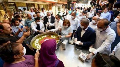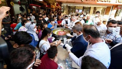 Yapılan konuşmaların ardından Milletvekili Sabahat Özgürsoy Çelik, AK Parti İl Başkanı Adem Yeşildal Antakya Belediye Başkanı İzzettin Yılmaz birlikte vatandaşlara aşure dağıttılar. (Haber: Hikmet OTUZBİR)