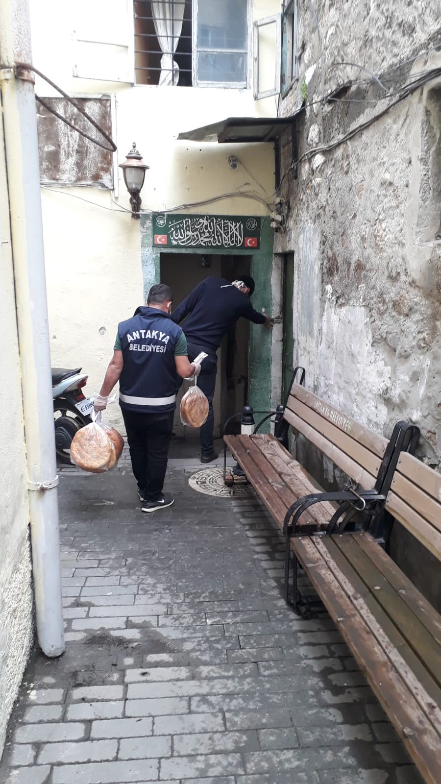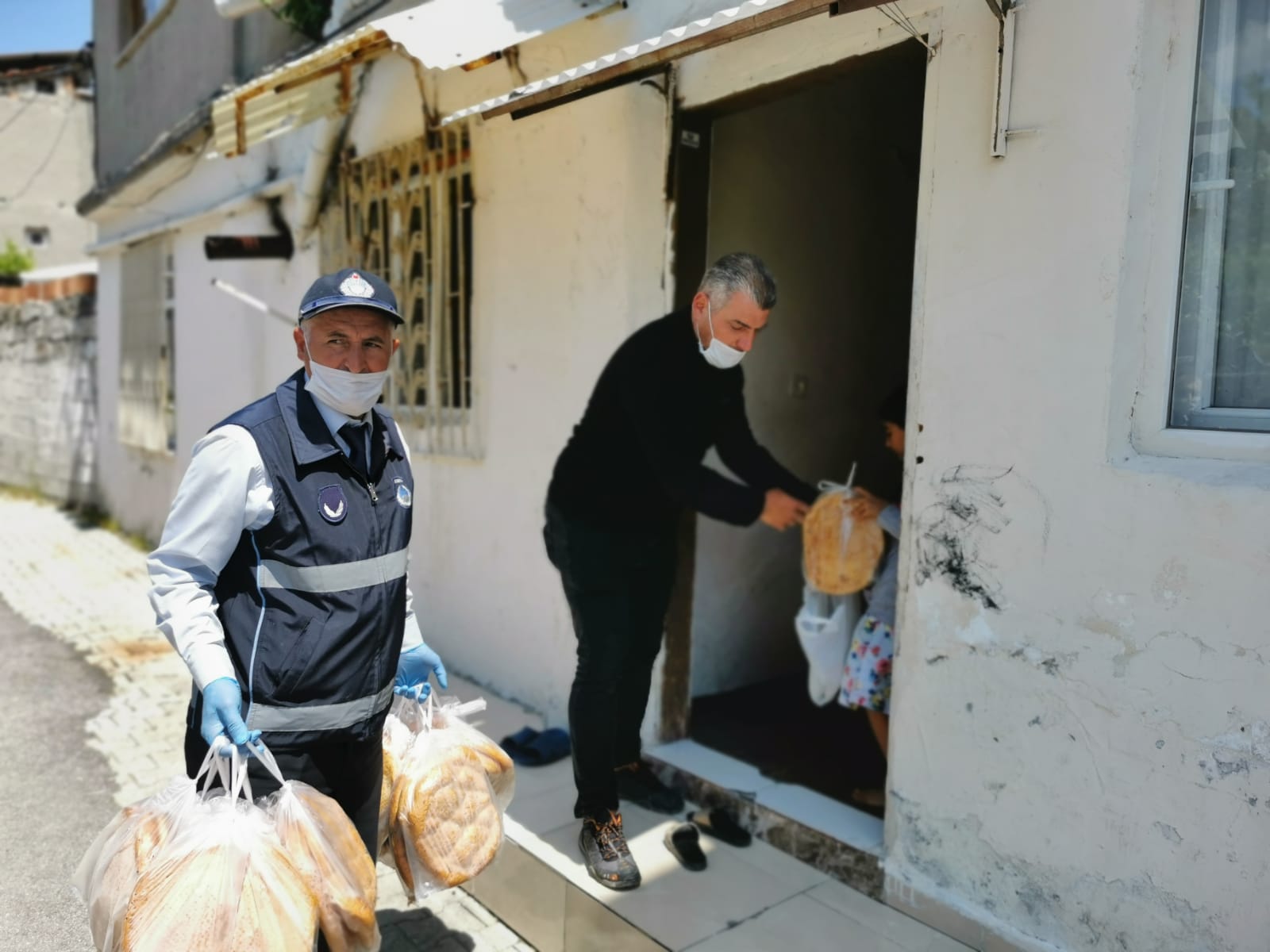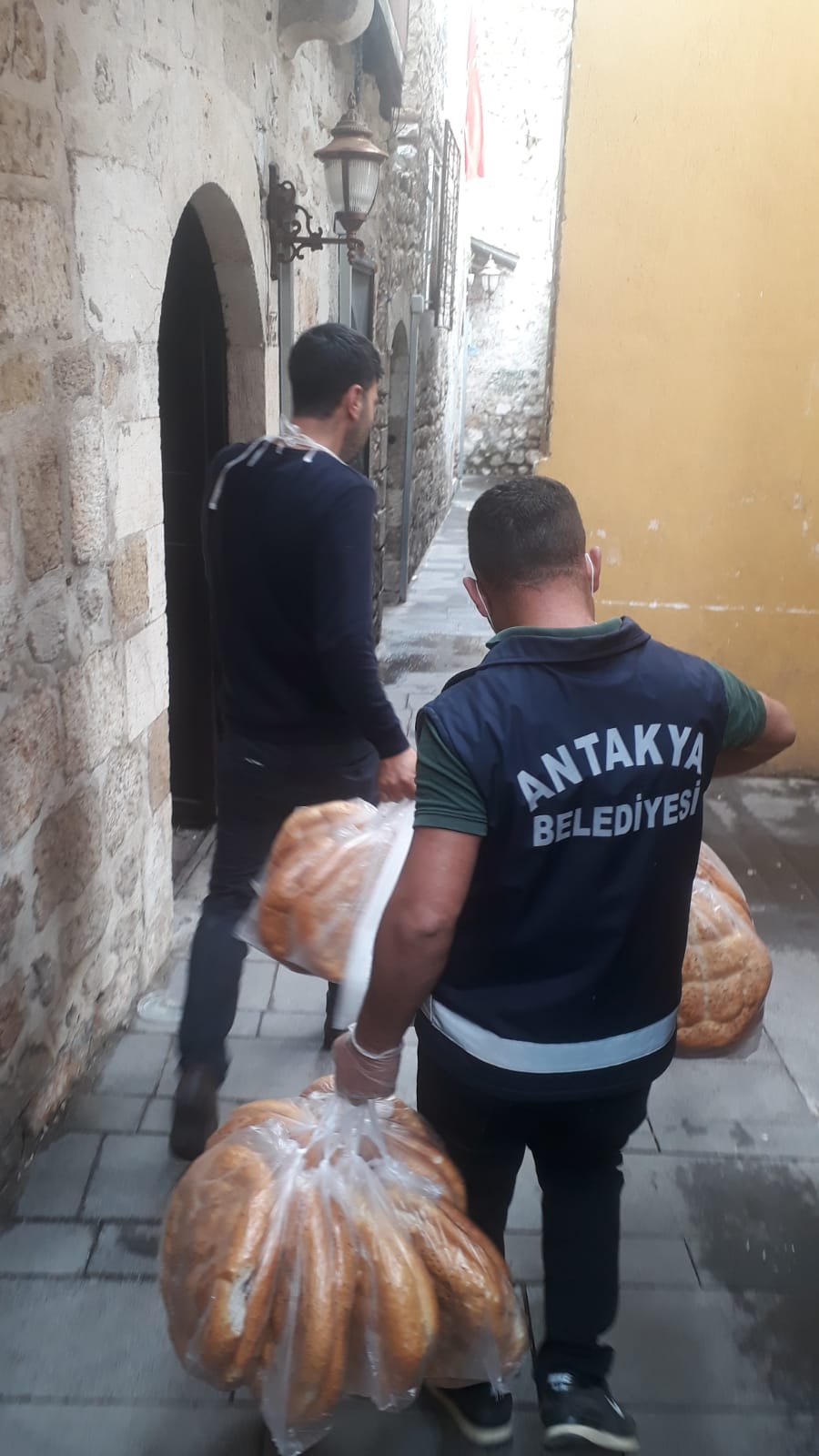 Antakya Belediyesi Vefa Sosyal Destek Grubu ekipleri sokağa çıkma kısıtlaması süresince de kapı kapı dolaşarak vatandaşlara maske ve ekmek dağıtımı gerçekleştirdi.