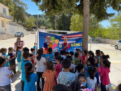 Antakya Belediyesi, okulların açılmasıyla beraber birinci sınıf öğrencilerinin okula alışmalarını kolaylaştırmak amacıyla palyaço, yüz boyama, balon şov, dans ve oyunlar ile çocukların oryantasyon dönemine destek olmaya devam ediyor.