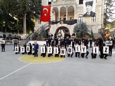 Okul yönetimi ve öğretmenler tarafından düzenlenen anma programı, okul bahçesinde yapıldı. Törene Lise bölümü müdiresi Nevin Yalım, İlkokul& Ortaokul Müdürü Yaşar Tangüleç, Müdür yardımcısı Tülin Özkaya, öğrenciler, öğretmenler ve veliler katıldı. Atatürk anıtına çelenk sunulmasının ardından, saat 09.05’te sirenlerin çalmasıyla iki dakikalık saygı duruşunda bulunuldu. İstiklal Marşı’nın okunmasıyla devam eden program kapsamında Tarih Öğretmeni Alaattin Akıllı’nın yaptığı “10 Kasım’ın Anlam ve Önemi” konulu konuşması, şiir ve kompozisyon dalında dereceye giren öğrencilere verilen ödüllerin ardından öğrenciler tarafından Atatürk’ün sevdiği şarkılar ve çeşitli tiyatral gösteriler sunuldu. Veliler tarafından gözyaşlarıyla izlenen program alkışlarla son buldu.