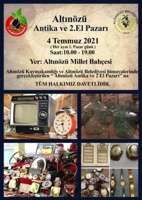 Altınözü Kaymakamlığı ve Belediyesi ortak organizasyonuyla ilgili yapılan açıklamada, “Meraklılarına hitap eden ve değeri bilinmeyen enteresan eşyalarla karşılaşacağınız Altınözü Antika ve 2.El Pazarı her ayın ilk Pazar günü Altınözü Millet Bahçesinde kurulacak stantlarda vatandaşlara hizmet edecek.