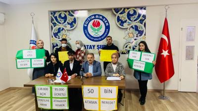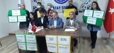 Hatay Memur-Sen üyesi atanamayan iki öğretmen, hükumete seslenerek atanamayan öğretmen sorununun çözülmesini istedi.