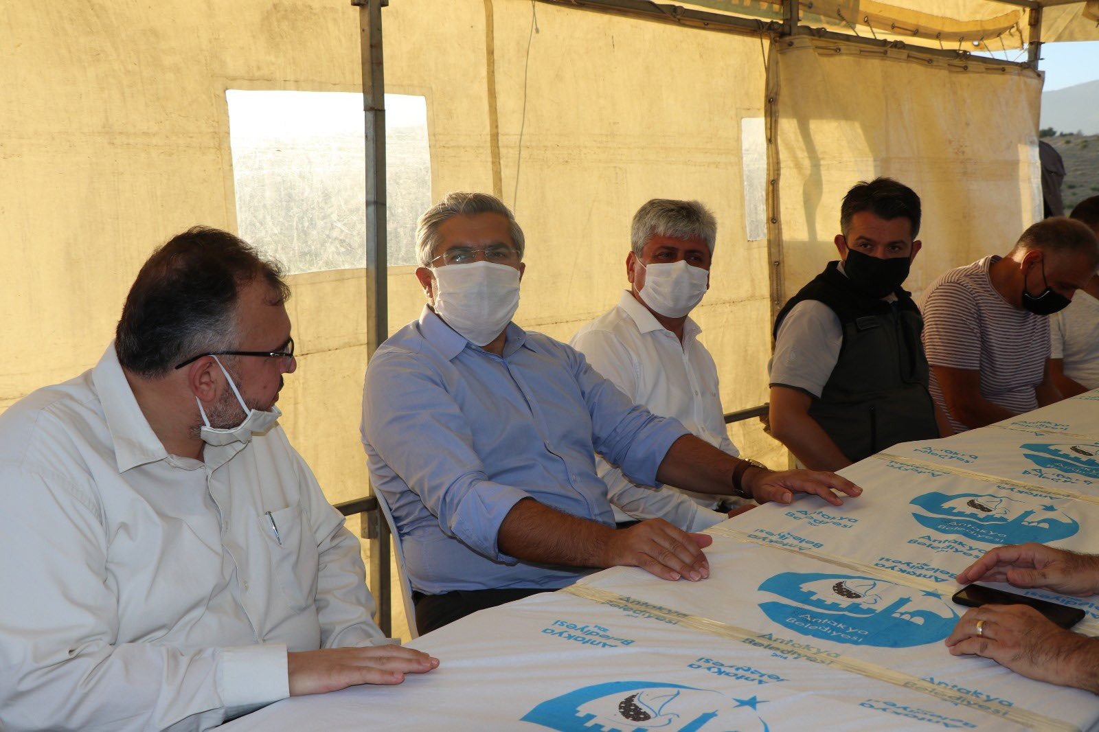 ATSO heyeti kriz merkezinde Tarım ve Orman Bakanı Bekir Pakdemirli, Hatay Valisi Rahmi Doğan, Hatay İl Emniyet müdürü Vedat Yavuz, Ak Parti Hatay Milletvekili Hüseyin Yayman, Antakya Ziraat Odası Başkanı Mehmet Muzaffer Okay ve Dizi-Sinema oyuncusu Uğur Aslan ile bir araya geldi.
