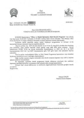 Koronavirüs yasakları kapsamında 17 gün boyunca kapalı olacak olan işyerlerine destek olunması amacıyla KOSGEB tarafından duyurulan destek başvurularının kapsamının genişletilmesi amacıyla Antakya Ticaret ve Sanayi Odası tarafından T.C. Sanayi ve Teknoloji Bakanlığı TOBB | Türkiye Odalar ve Borsalar Birliği KOSGEB Başkanlığı’na acil başvuru yapıldı.