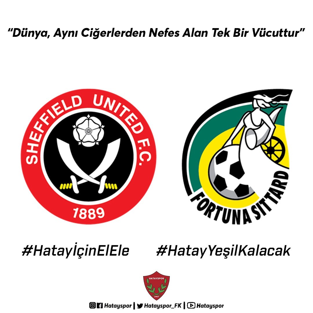 Hatay‘ın Belen, Arsuz ve İskenderun ilçelerinde çıkan orman yangınları sonrası Türkiye’nin 4 büyük kulübünün yanı sıra çok sayıda futbol kulübünün ve spor federasyonlarının destek verdiği ‘Hatay İçin El Ele’ fidan bağışı kampanyasına Hollanda takımlarından Fortuna Sittard ile İngiltere takımlarından Sheffield United da destek verdi.