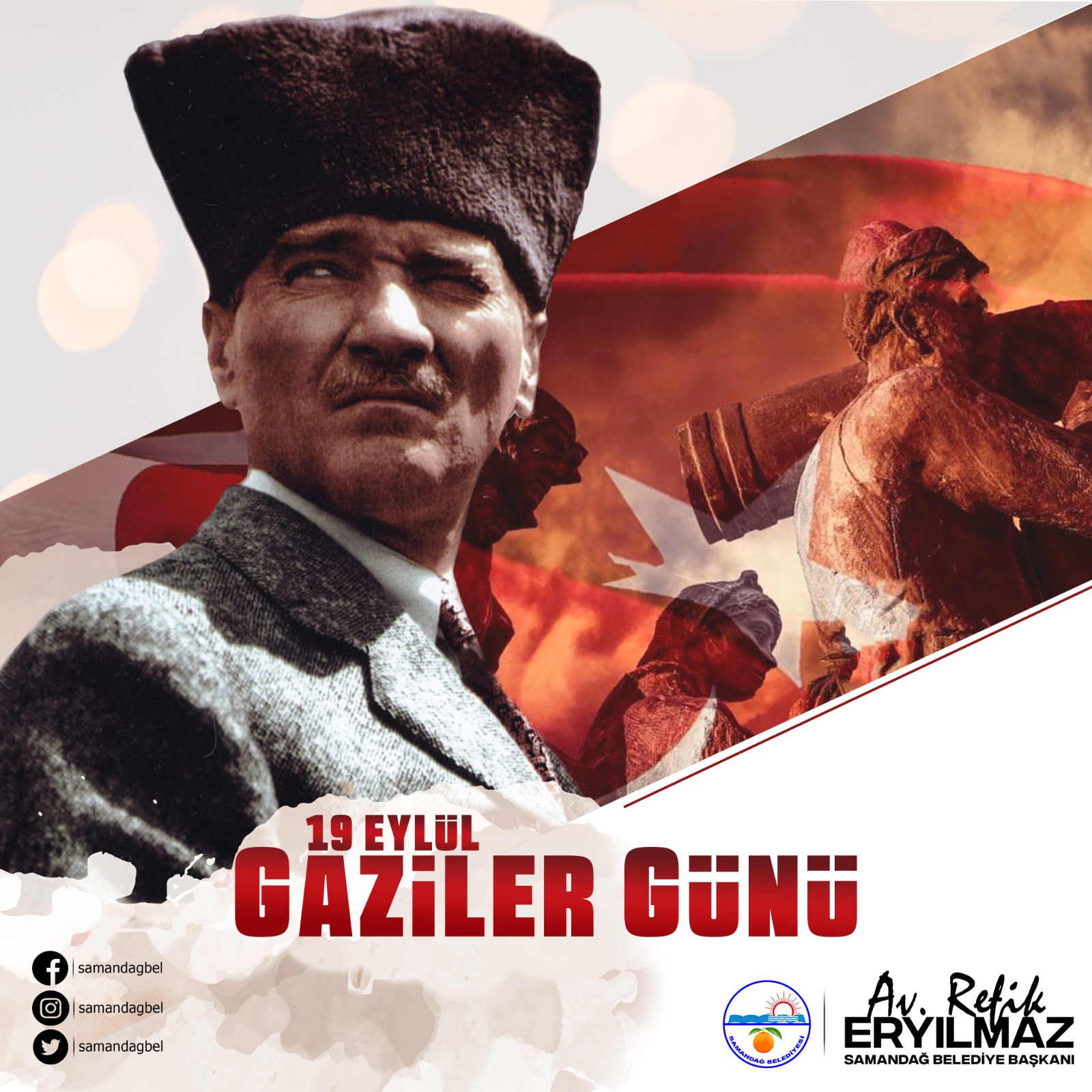 Samandağ Belediye Başkanı Av. Refik Eryılmaz, 19 Eylül Gaziler Günü dolayısıyla bir mesaj yayınladı.
