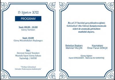 Yayladağı Belediye Başkanı Mehmet Yalçın, ilçede düzenlenecek olan Aba Güreşi Türkiye şampiyonasına tüm vatandaşları davet etti.