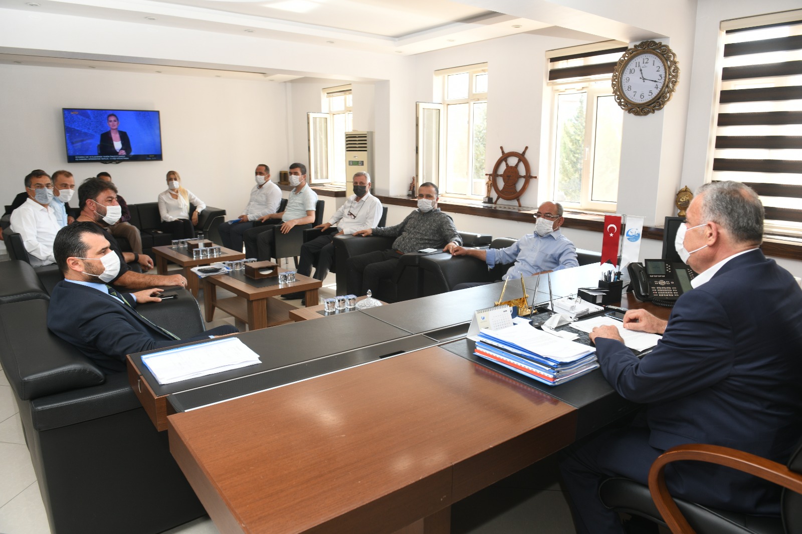 Hizmet-İş Sendikası Hatay İl Başkanlığı 6. Oturum ile neticelenen toplu iş sözleşmesi toplantısının ardından Başkan Yılmaz’ı makamında ziyaret ederek, teşekkür ettiler.