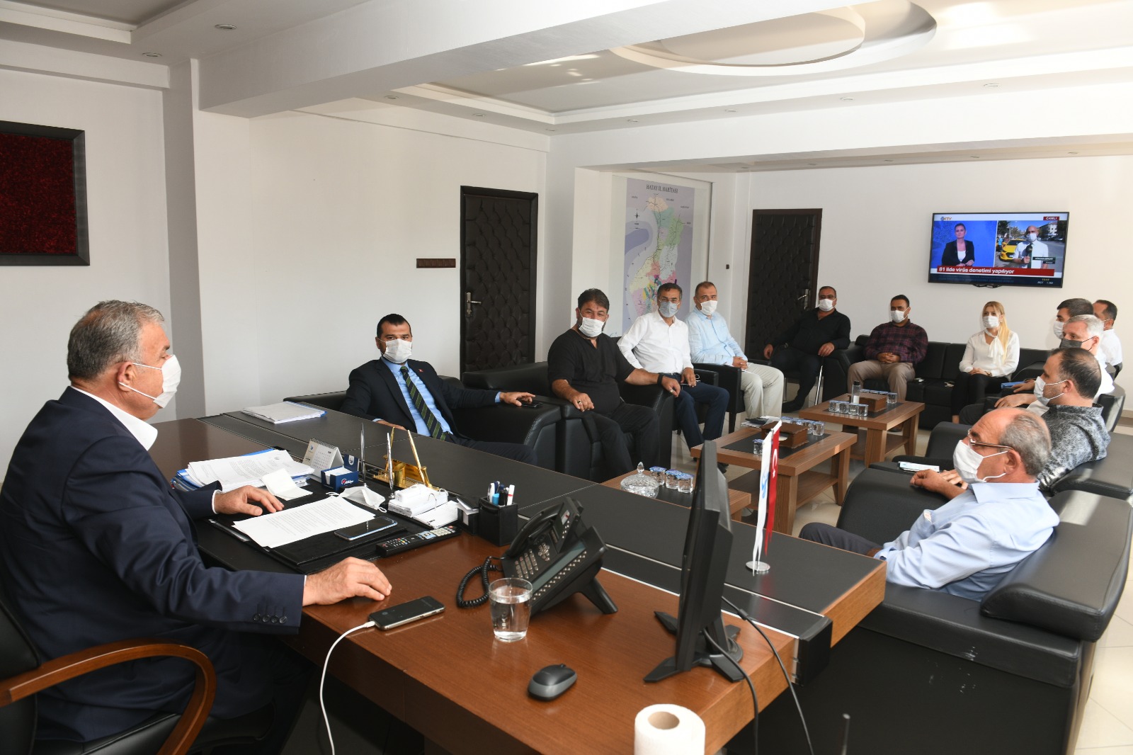 Hizmet-İş Sendikası Hatay İl Başkanlığı 6. Oturum ile neticelenen toplu iş sözleşmesi toplantısının ardından Başkan Yılmaz’ı makamında ziyaret ederek, teşekkür ettiler.