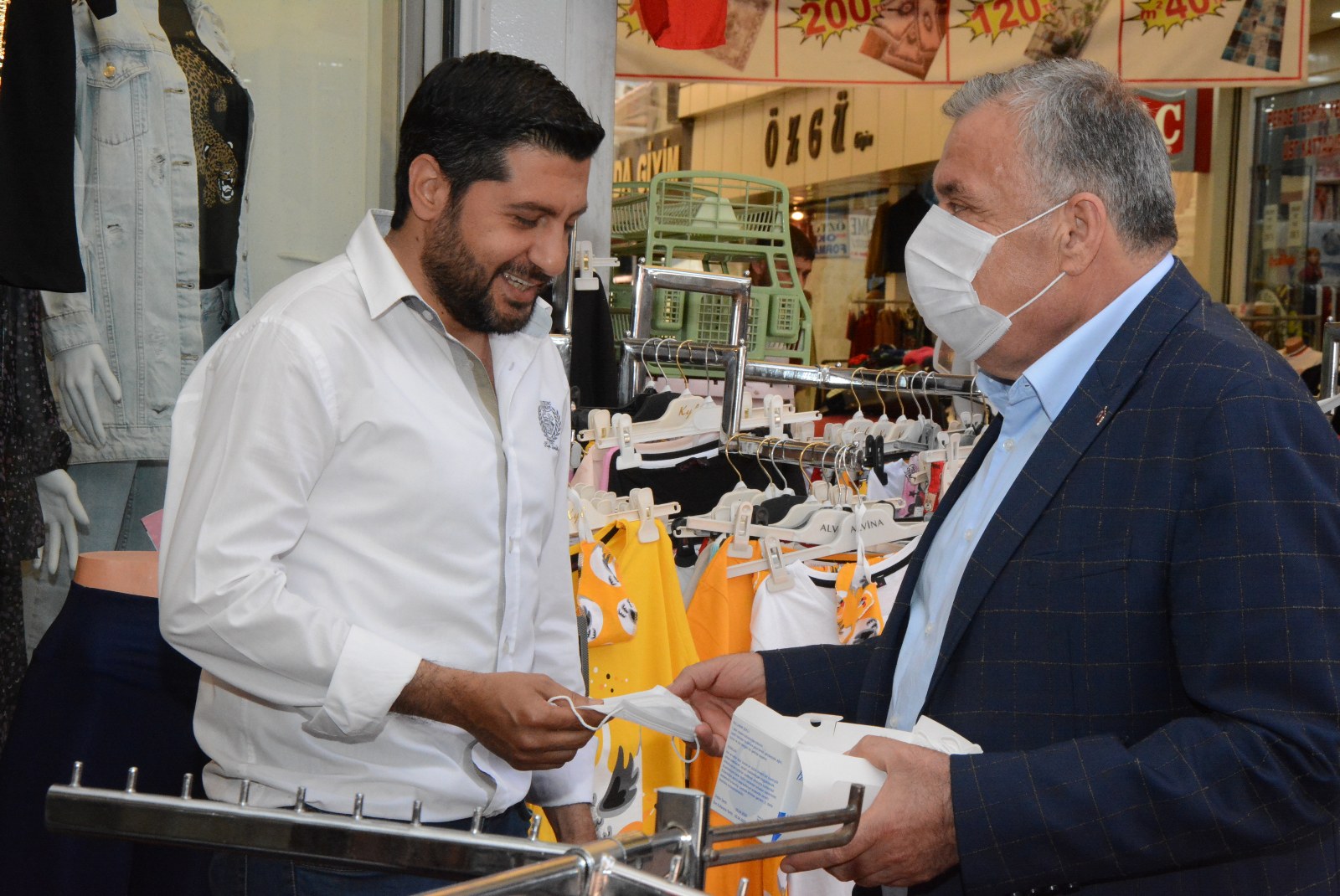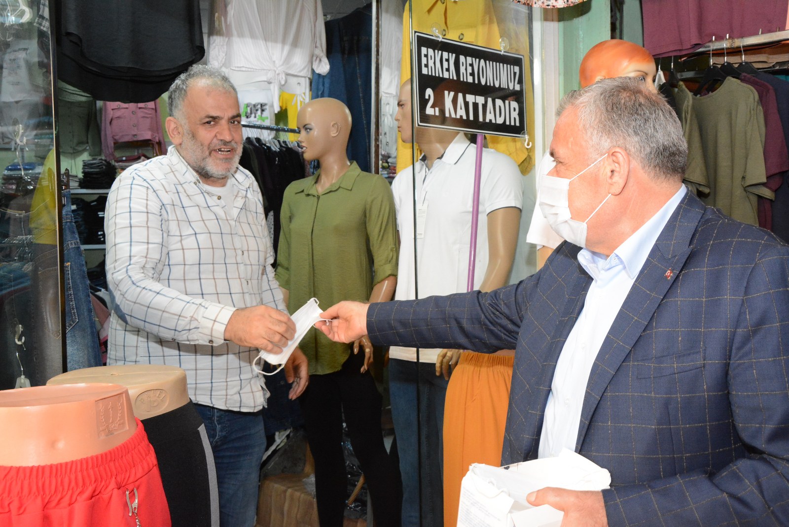 Antakya Belediye Başkanı İzzettin Yılmaz, Belediye Meclis Üyesi Ömer Gürbüz ve Başkan Yardımcıları eşliğinde çarşı esnafını ziyaret ederek, maske kullanımı ve sosyal mesafeye uyulması konusunda hatırlatmalarda bulundu.