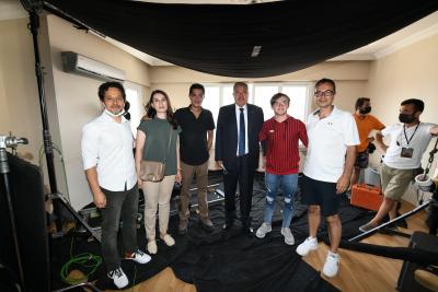Başkan Yılmaz ziyaretin sonunda set ekibi ile günün anısına hatıra fotoğrafı çekildi.