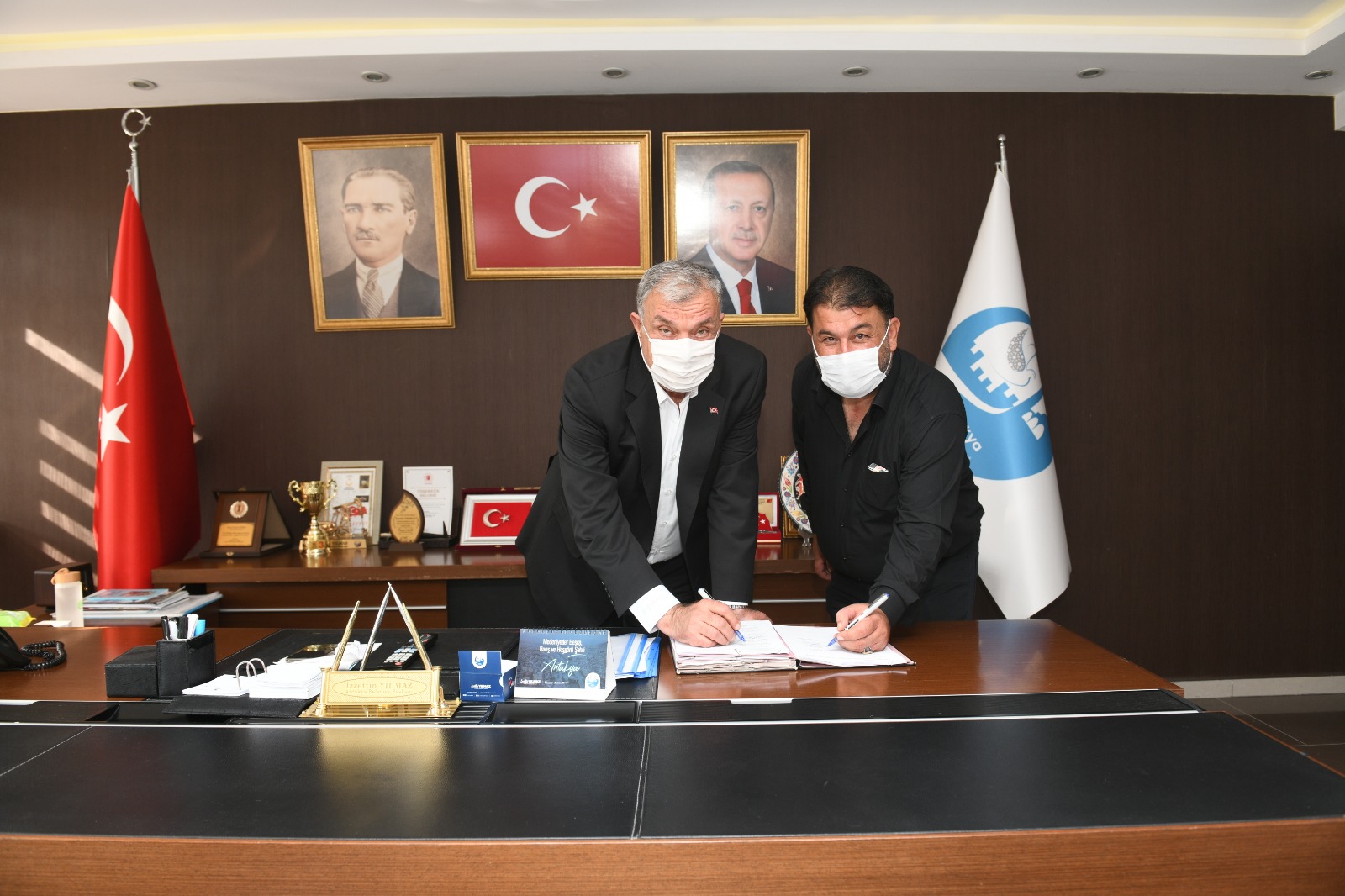 Toplu İş Sözleşmesi Antakya Belediye Başkanı İzzettin Yılmaz’ın makamında, Hizmet-İş Sendikası Hatay İl Başkanı Ercan Salcan, Belediye Başkan Yardımcıları ve sendika yönetim kurulu üyelerinin katılımı ile imzalandı.