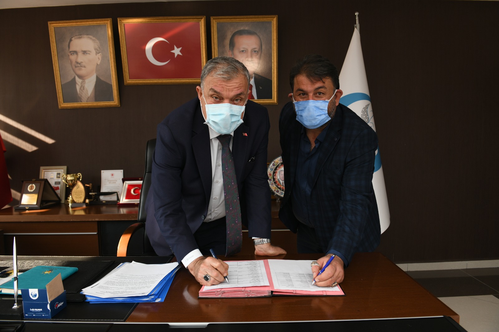 Toplu İş Sözleşmesi Antakya Belediye Başkanı İzzettin Yılmaz’ın makamında; Hizmet-İş Sendikası Hatay İl Başkanı Ercan Salcan, Belediye Başkan Yardımcıları ve sendika yönetim kurulu üyelerinin katılımı ile imzalandı.