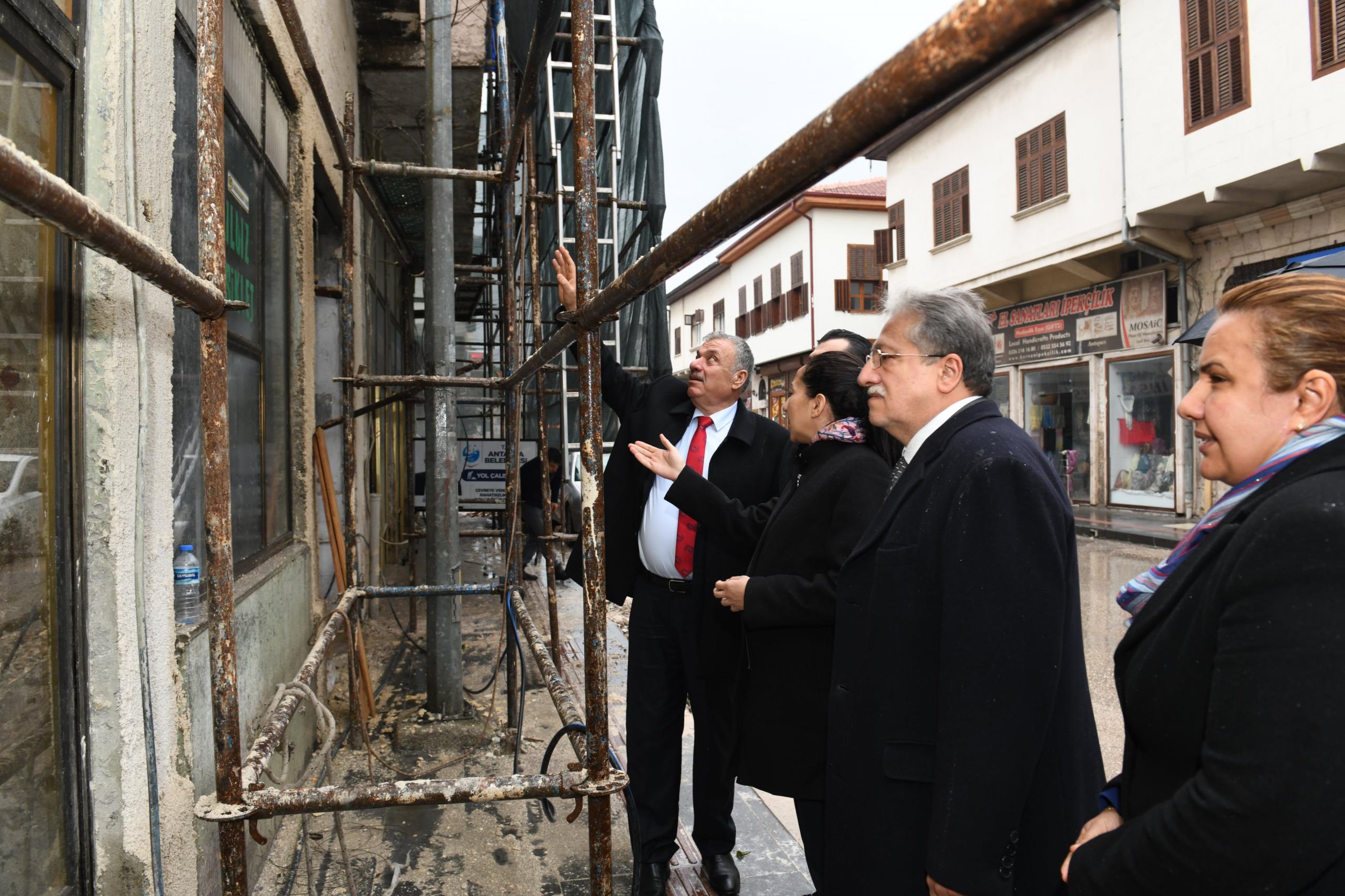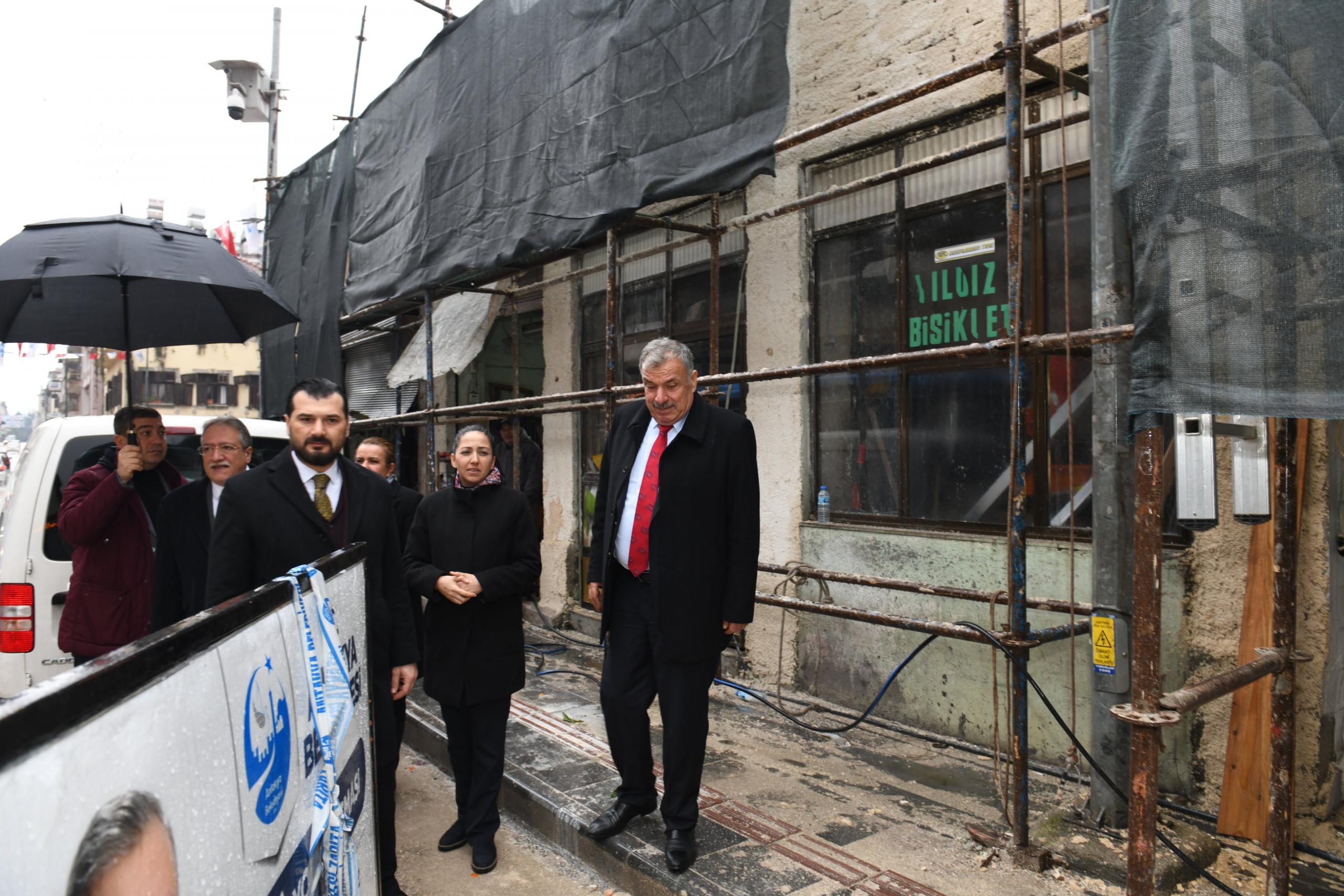 Antakya Belediye Başkanı İzzettin Yılmaz, Kurtuluş Caddesi’ni Yeniden Canlandırma Projesi kapsamında devam eden restorasyon çalışmalarını yerinde inceledi.