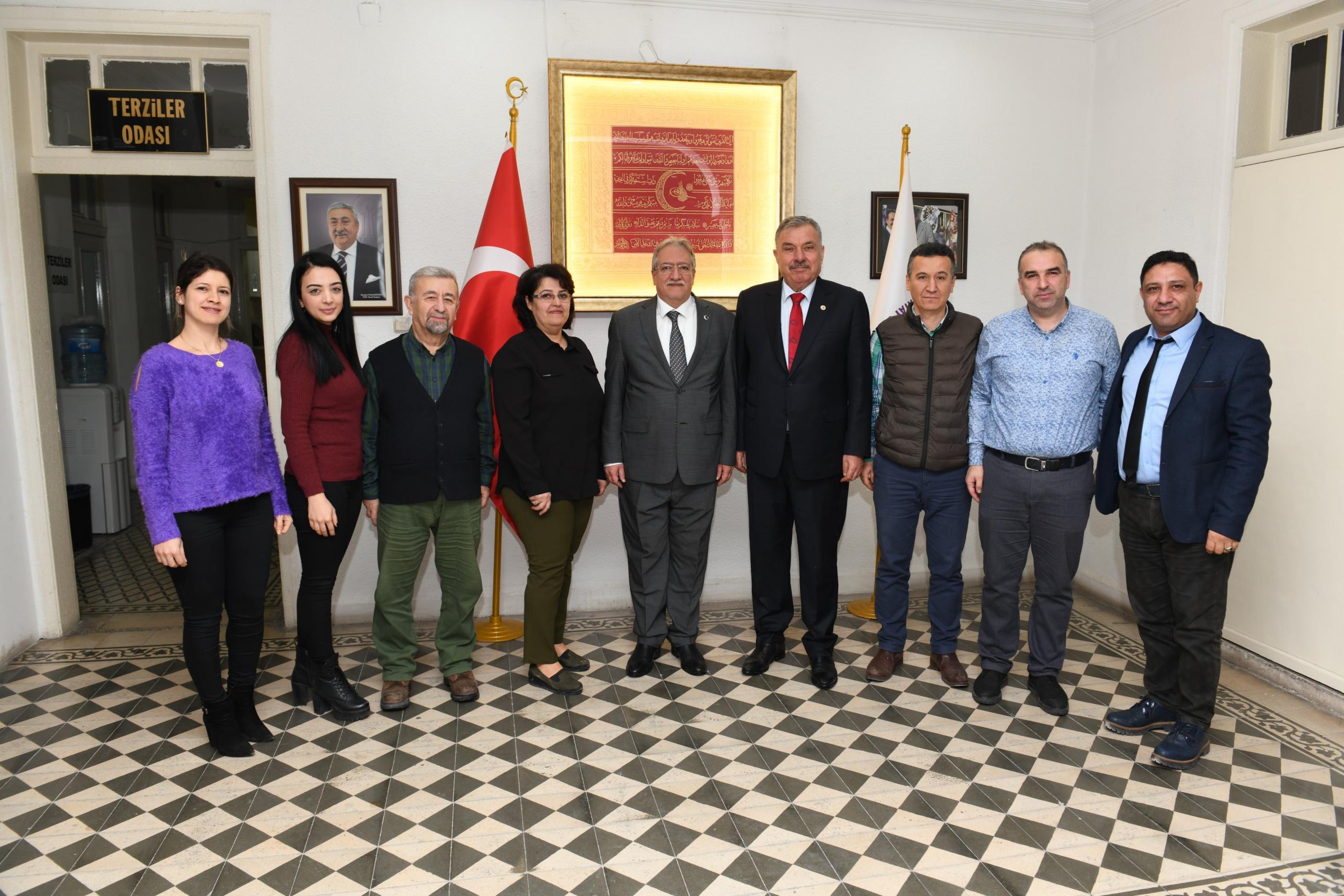 Esnafla yürütülen restorasyon projesi hakkında istişarelerde bulunan heyet daha sonra HESOB’u ziyaret ederek Başkan Abdulkadir Teksöz ev sahipliğinde esnafın sıkıntıları, istekleri ve genel konular hakkında istişarelerde bulundular.