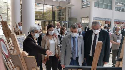 Antakya Belediye Başkanı İzzettin Yılmaz, Geleneksel Türk Süsleme Sanatlarından biri olan Tezhip sanatının tanıtılması amacıyla İl Kültür ve Turizm Müdürlüğünce Hatay Arkeoloji Müzesi’nde düzenlenen İlimiz Geleneksel El Sanatçılarının eserlerinden oluşan “Tezhip” sergisinin açılışına katıldı.