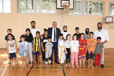 Antakya Belediye Başkanı İzzettin Yılmaz, yüzme, karate ve basketbol alanlarında kurs alan öğrencileri ziyaret etti.