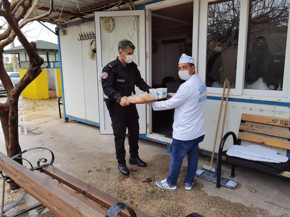Antakya Belediye Başkanı İzzettin Yılmaz’ın talimatları doğrultusunda Antakya Belediyesi ekipleri, hafta sonu sokağa çıkma yasağında Polis ve Jandarma kontrol noktalarına çorba, çay ve tatlı ikramı ulaştırdılar.