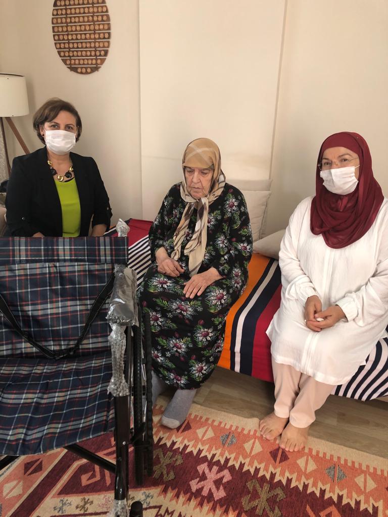 Başkanımızın selamı ile iletilen tekerlekli sandalyenin hayırlı olması temennisi ile teyzemize acil şifalar diliyoruz.”