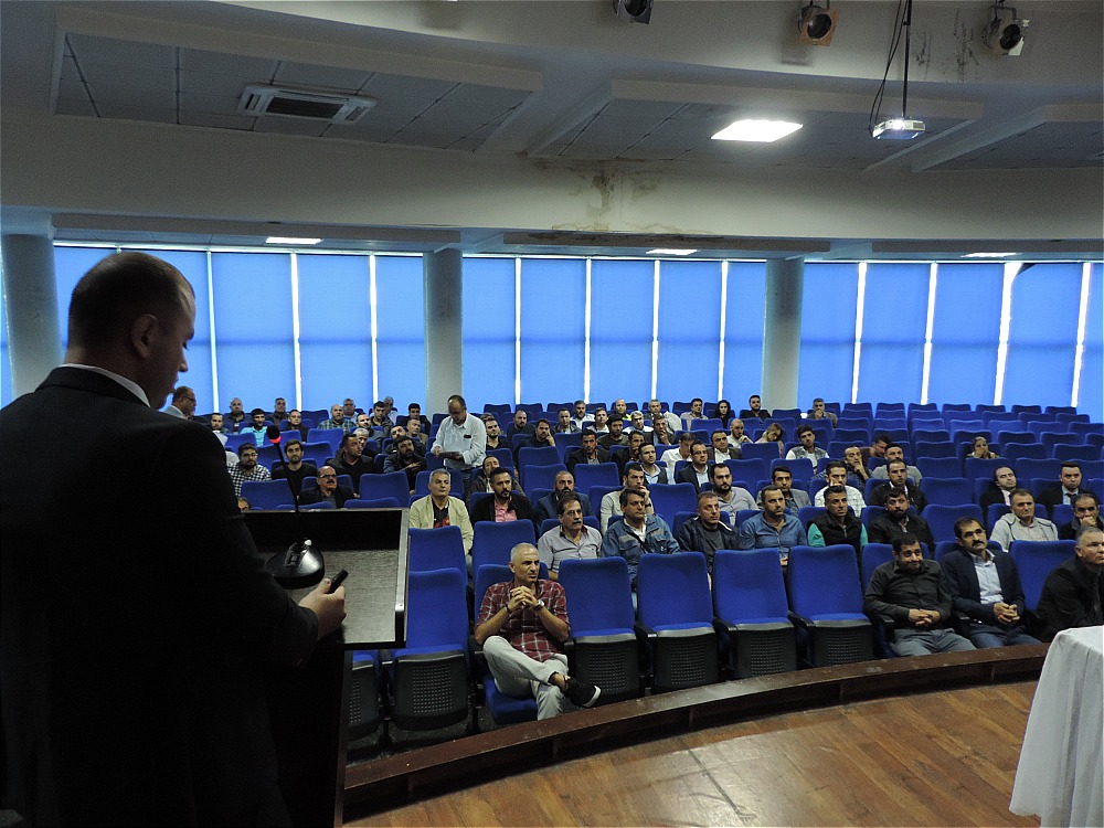 Eğitim toplantısında, Liman Başkanlığında görevli Ali Çatal, slayt görüntüleri eşliğinde ders anlattı.