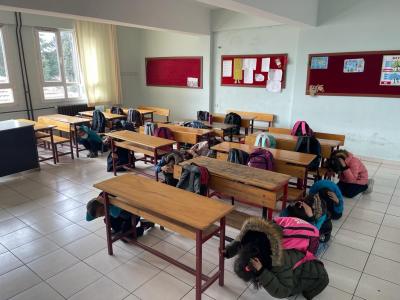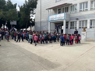 Hatay Büyükşehir Belediyesi, 28 Şubat Sivil Savunma Günü ve 1-7 Mart Deprem Haftası vesilesiyle okullarda gerçekleştirdiği yangın eğitimi ve tatbikatlarına devam ediyor.
