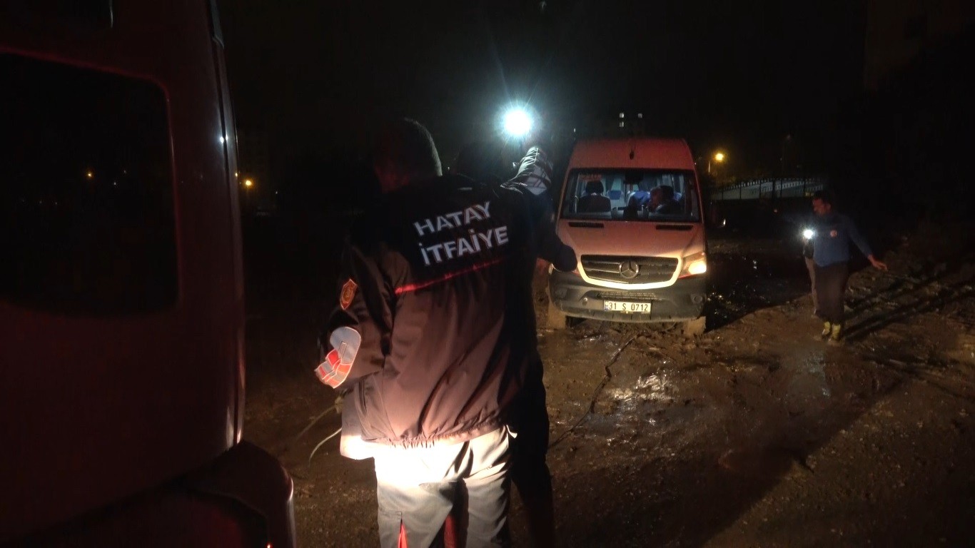 Hatay’ın Antakya ilçesinde sağanak yağışlar nedeniyle çamur oluşan patika yolda çamura saplanan 10 aracı itfaiye ekipleri kurtardı.