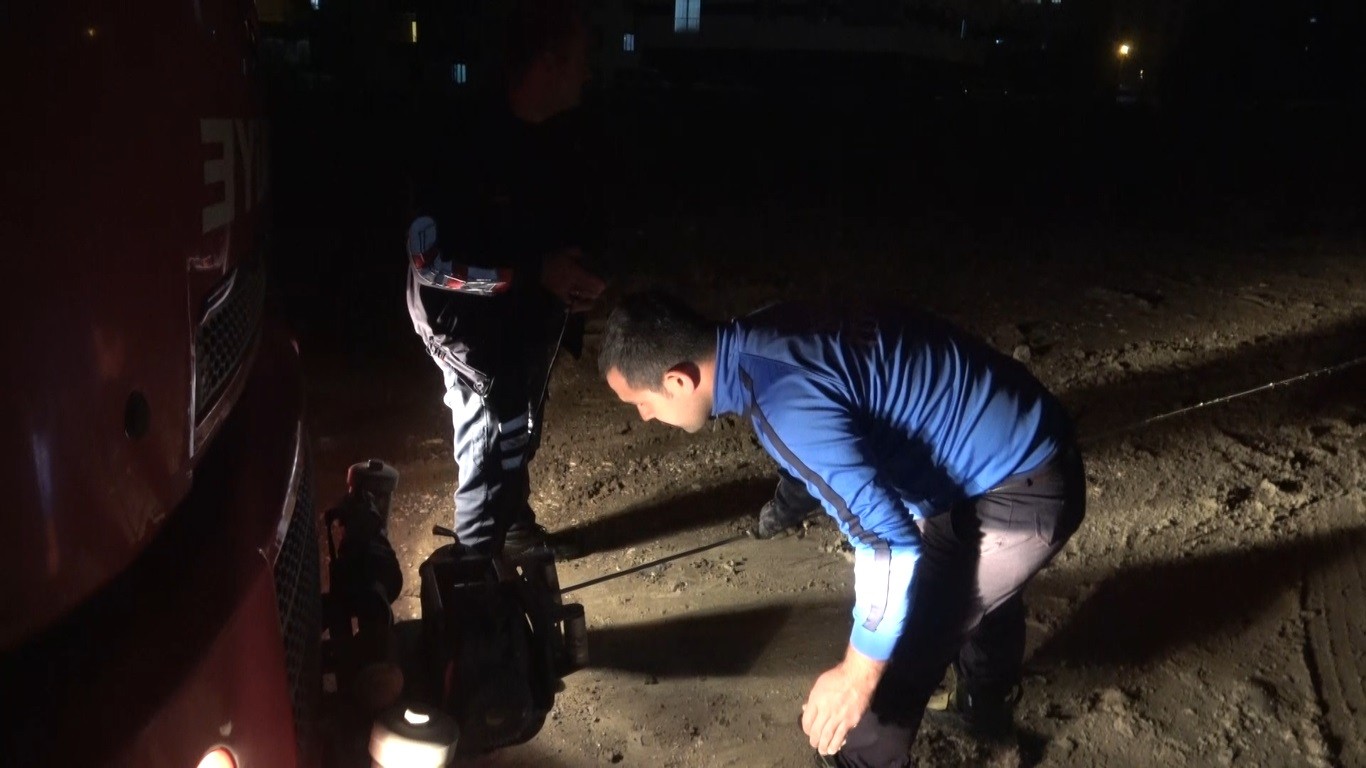 Çamura saplanan araçları itfaiye kurtardı