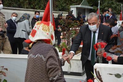 Daha sonra beraberindeki heyet ile birlikte Şehitliği gezerek şehit kabirlerine karanfiller bırakan Başkan Yılmaz, şehit yakınları ile bir süre sohbet ederek onlara başsağlığı ve sabır dileğinde bulundu. Hatay İl Müftüsü Ömer Faruk Bilgili tarafından okunan Kuran-ı Kerim tilaveti ve şehitlerimizin ruhuna edilen duaların ardından 18 Mart Çanakkale Deniz Zaferi ve Şehitleri Anma günü programı sona erdi.