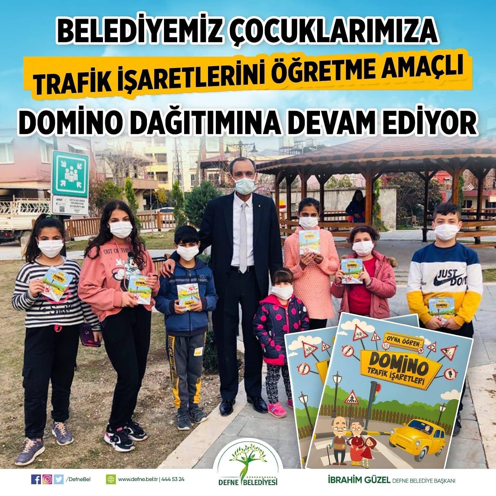 Defne Belediye Başkanı İbrahim Güzel’in öncülüğünde ilçe genelindeki çocuklara Domino Trafik İşaretleri Zeka Oyunu kiti dağıtıldı. Çocukların yüzlerini güldürmek için yapıldığı bildirilen projeyle ilgili yapılan açıklamada, “Başkanımız İbrahim Güzel’in, salgın sürecinde günün belirli saatlerinde dışarı çıkmalarına izin verilen çocuklarımızın, yüzlerini güldürmek için ulaştırdığı, Domino Trafik İşaretleri Zeka Oyunu kitlerini dağıttık. Evde kalmayı eğlenceye dönüştürmeyi ve çocuklarımızın aileleriyle nitelikli vakit geçirmelerini istedik” denildi.