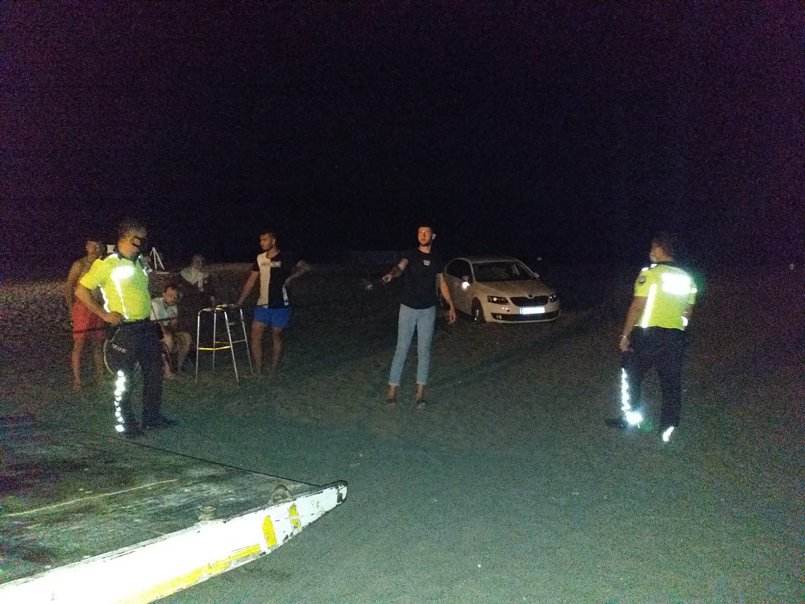 Samandağ’da ailesiyle denize giden engelli vatandaşın aracı, bir anda kumsala gömüldü. Vatandaş ve ailesi, tüm çabalarına rağmen aracı çıkaramayınca, yardımlarına polis koştu. İlçe Emniyet Müdürlüğü ekipleri çekiciyle aracı kumsaldan çıkardı.