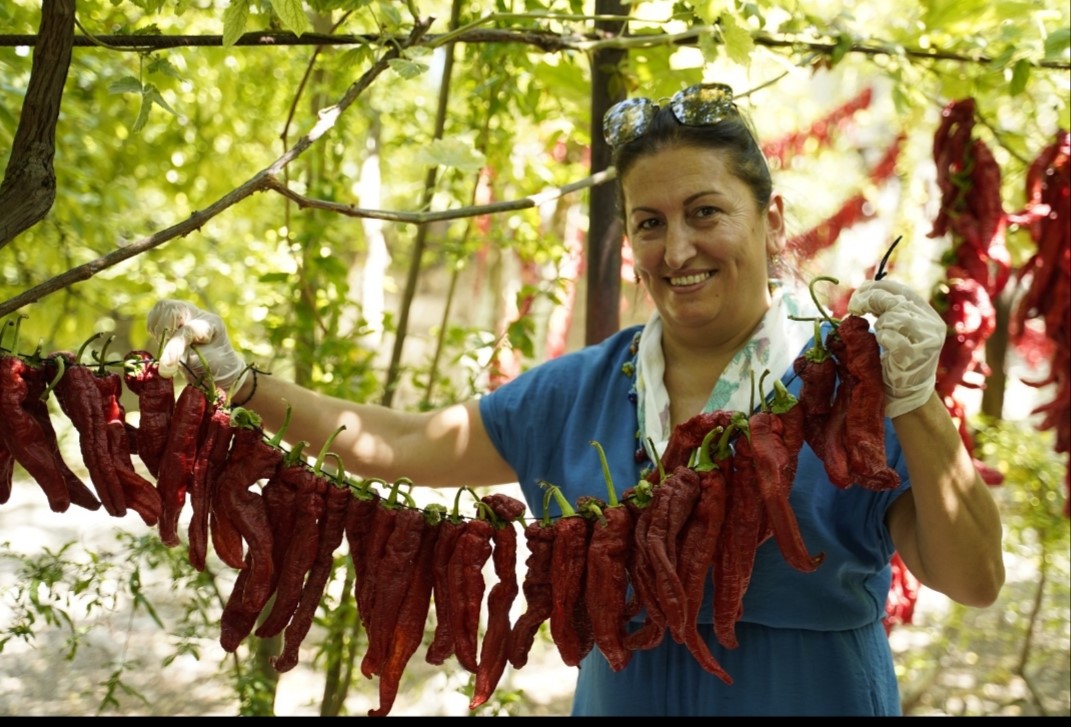 Slow Food üyelerinden Şiraz Demir’e ait tarlada yapılan hasat sonrasında, bazı işlemlerden geçirilen biberle yapılan çeşitli yiyecekler konuklara sunuldu.