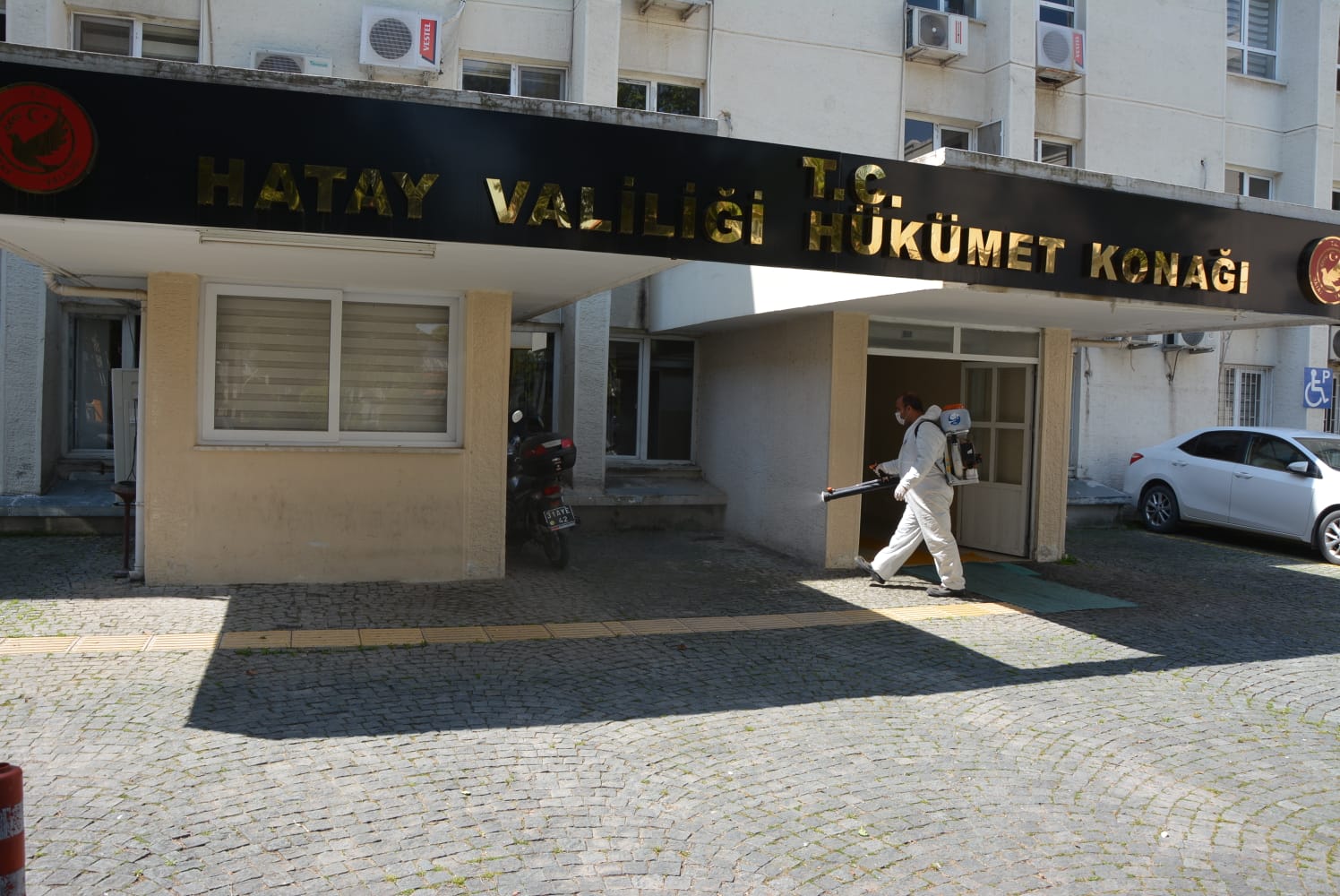 Koronavirüs ile mücadele tedbirleri kapsamında ekiplerimiz halkın sağlığını korumak için Hatay Valiliği, Cumhuriyet Mahallesi İpek Sokaklar, Rüstem Tümer Paşa Caddesi, Yüzbaşı Asım Caddesi, Hatay Kent Güvenlik Yönetim Merkezi’nde, Vali Ürgen Alanı, Atatürk Caddesi, Köprübaşı, Cumhuriyet Caddesi, Fatih Caddesi, Mehmet Kafadar Caddesi, Şehit Mehmet Duran Caddesi ve vatandaşların sıklıkla kullandığı bölgelerde ilaçlama çalışmaları gerçekleştirdi.”