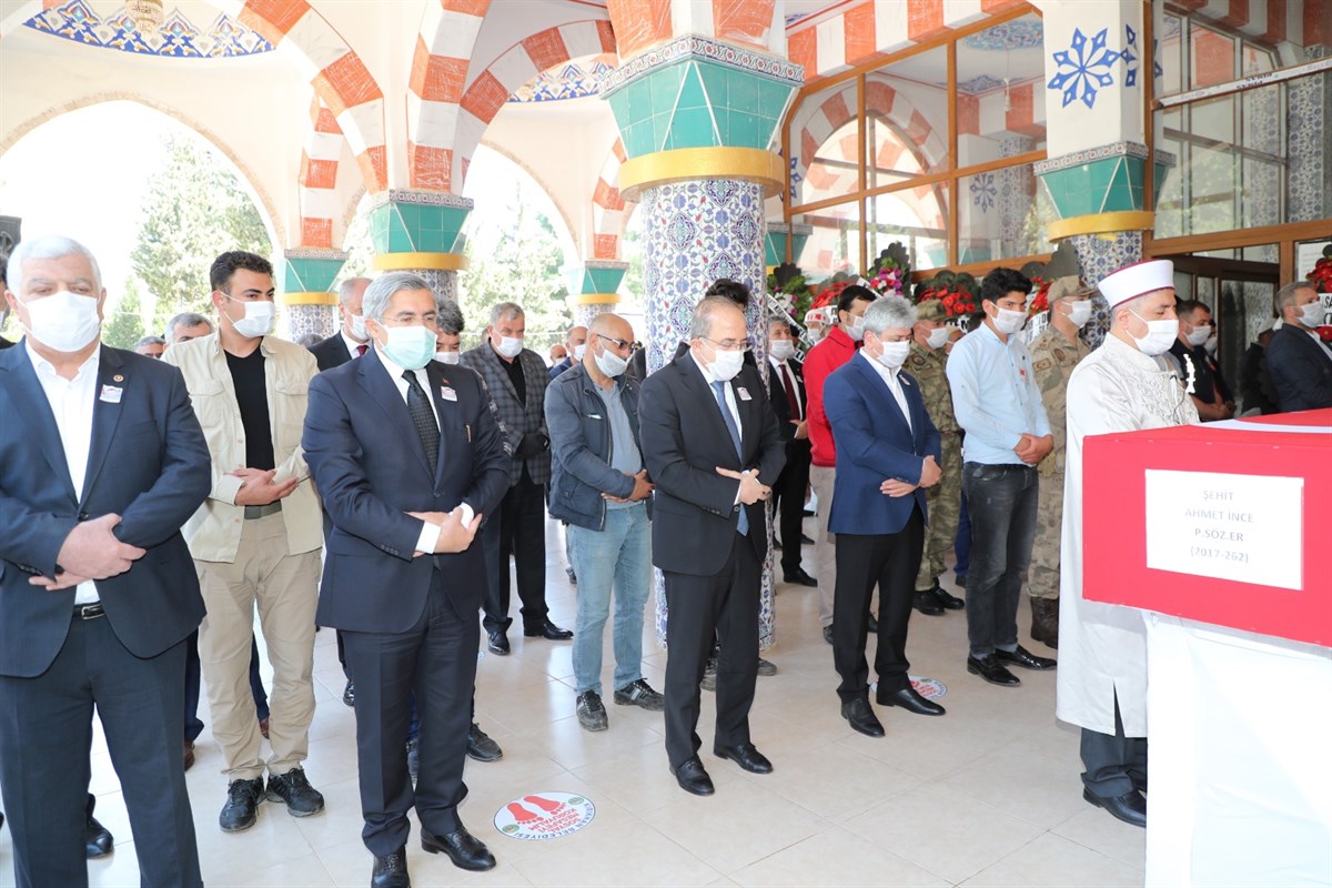 Beş kardeşten en büyüğü, 28 yaşında ve bekar olan şehidimiz Piyade Sözleşmeli Er Ahmet İnce’nin tabutunun sarılı olduğu Türk Bayrağı, Vali Rahmi Doğan ve Milli Savunma Bakan Yardımcısı Şuay Alpay tarafından sağlık sorunları nedeniyle sedyeyle cenaze törenine katılan baba Ali İnce’ye sabır ve baş sağlığı temennileriyle teslim edildi.