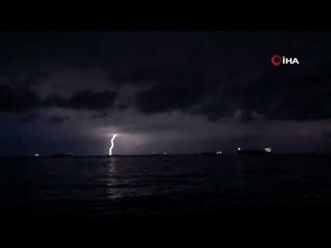 Hatay’da akşam saatlerinde başlayan şimşek şöleni ay ve yıldız manzarası ile görsel şölene dönüştü.