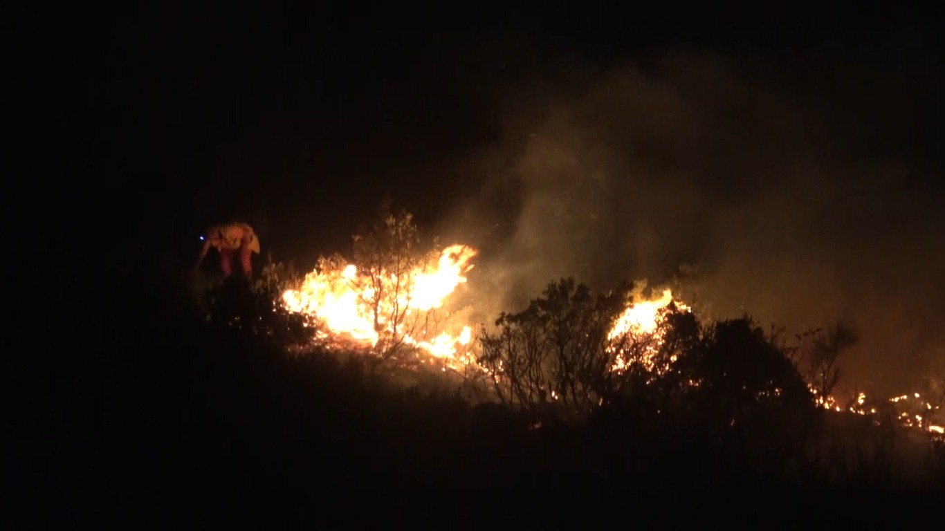 HATAY’IN ANTAKYA İLÇESİNDE GECE SAATLERİNDE ORMAN YANGINI ÇIKTI. RÜZGARIN ETKİSİYLE HIZLA YAYILAN ALEVLER GÜÇLÜKLE KONTROL ALTINA ALINDI. (MEHMET BAYRAK/HATAY-İHA)