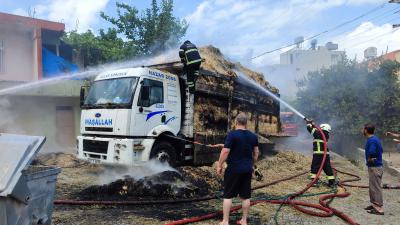 Hatay‘ın Samandağ ilçesinde saman yüklü kamyon alev aldı. Yangın itfaiye ekiplerinin müdahalesiyle söndürüldü.