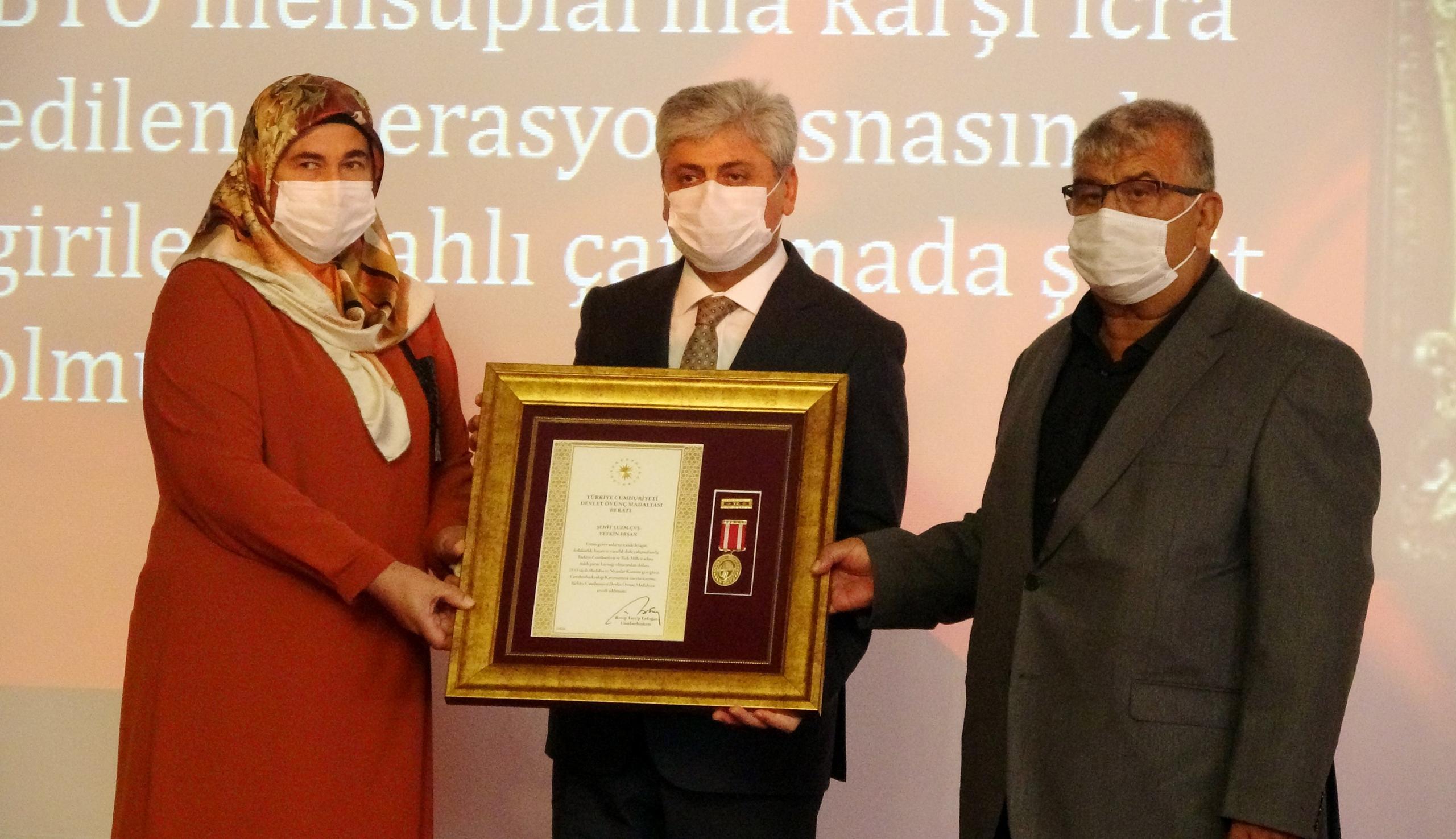 Hatay’da 8 şehit yakını ve 12 gaziye Devlet Övünç Madalyası ve Beratı verildi.