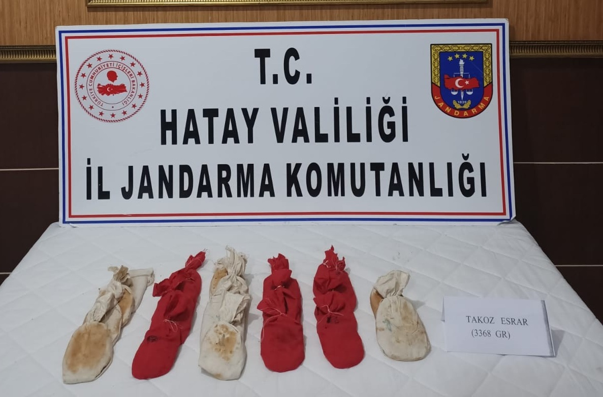 Altınözü İlçe Jandarma Komutanlığı ekipleri, Hacıpaşa Mahallesi’ndeki 1. derece kara askeri yasak bölgesinde bulunan tarlada toprağa gömülü uyuşturucu bulunduğu bilgisi üzerine harekete geçti.