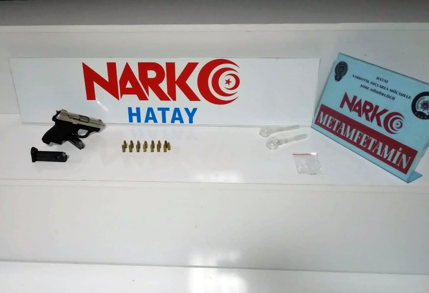 İl Emniyet Müdürlüğü Narkotik Suçlarla Mücadele Şube Müdürlüğü ekipleri, bir ihbarı değerlendirerek, Narlıca Mahallesinde bir adrese operasyon düzenledi. Adreste yapılan aramada 2 adet cam aparat puyp ve içerisinde 0.3 gram metamfetamin, 1 adet ruhsatsız 7.65 mm çapında tabanca ve bu tabancaya ait 2 adet şarjör ile 15 adet 7.65 mm fişek ele geçirildi. Şüpheli A.Y. gözaltına alınarak hakkında adli işlem yapıldı.