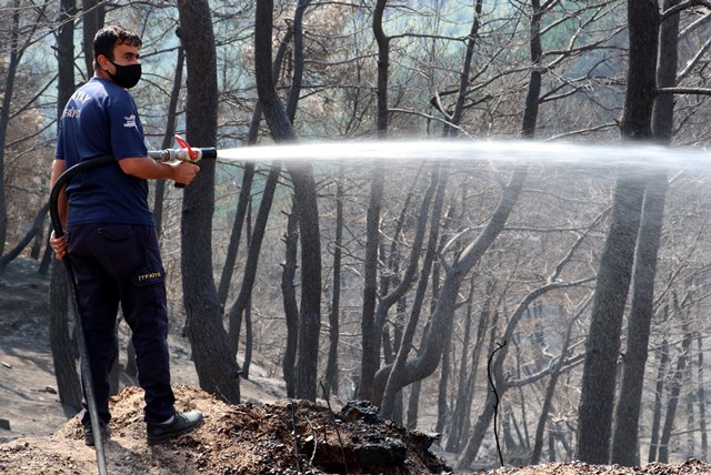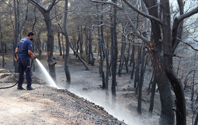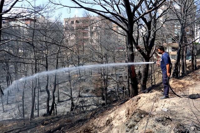 Hatay’da yanan ağaçlar soğutuluyor