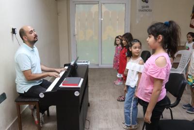 Farklı yaş gruplarından birçok çocuk, müzik eğitmeni eşliğinde koro çalışmaları ile hem eğleniyor hem de öğrenerek tatillerini verimli geçiriyor.