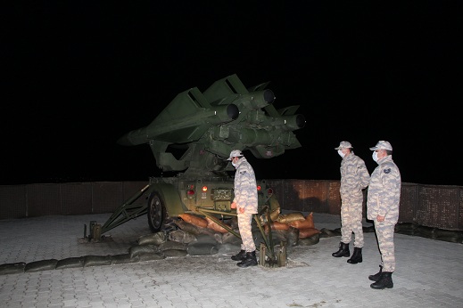Hatay’ın Yayladağı ilçesinde bulunan 21. HAWK Batarya Komutanlığı’nda görev yapan askerler yılbaşına görevlerinin başında girdi.